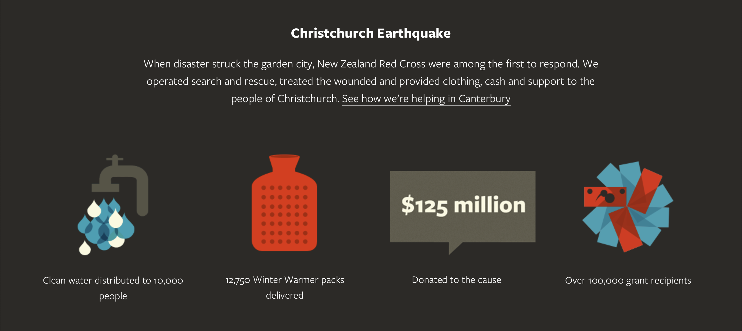 A key feature was the ability to donate directly in-page from any story. It was rewarding to be able to track a user's journey from arriving on the site, to reading an article about one of the Red Cross initiatives, to making a thousand dollar donation.